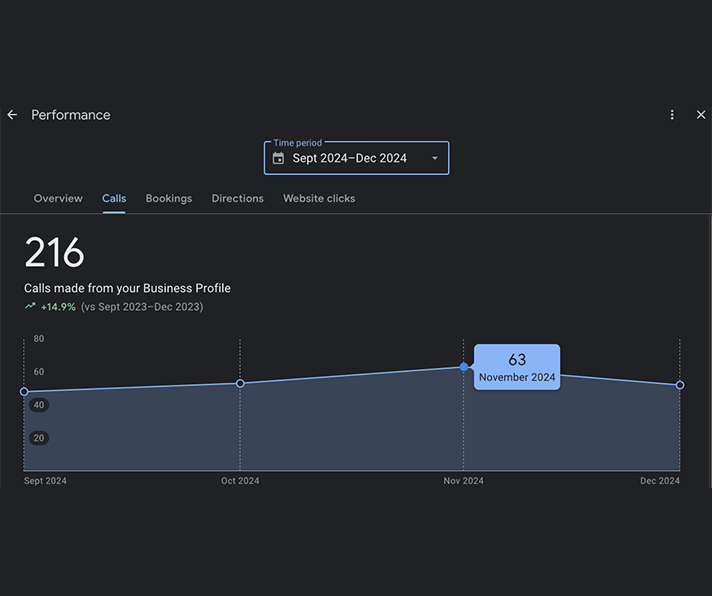 Our client saw 63 calls from Google Maps in just one month, turning search traffic into real business leads and bookings.